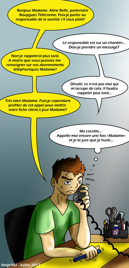 Yep, faut que je trouve une manière correcte de reprendre les personnes dans ce cas, mais sur le coup, j’ai souvent envie de raccrocher XD