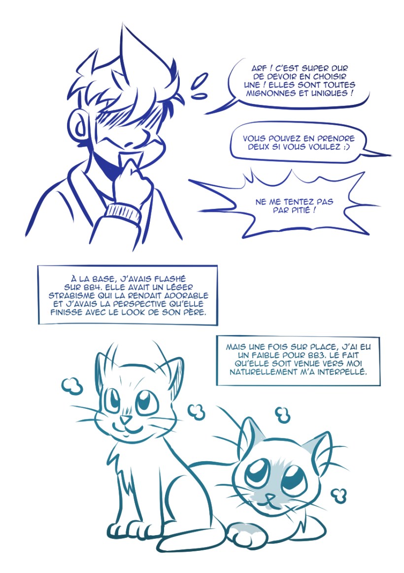 Grande amoureuse des chats comme tu le sais, j’ai trouvé cette histoire magnifique, car c’est ton histoire, et sans doute celle de beaucoup de monde. On devient vite gaga de ces petits animaux et ça emplit rapidement un appartement et une vie =}
