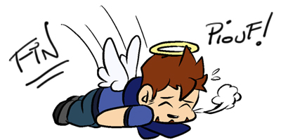 En tout, le fanmade contient 77 dessins. Ca peut paraître beaucoup, mais il faut savoir que pas mal sont basés sur le même « moule ». Par exemple, j’ai utilisé plusieurs fois le même dessin du Geek juste en changeant son visage, histoire de gagner du temps. De plus, j’ai fait le minimum en terme de colorisation (pas d’ombres et du lumière) car cela prend pas mal de temps aussi. Là aussi, pour les prochains fanmades, j’essaierai de faire un peu mieux.